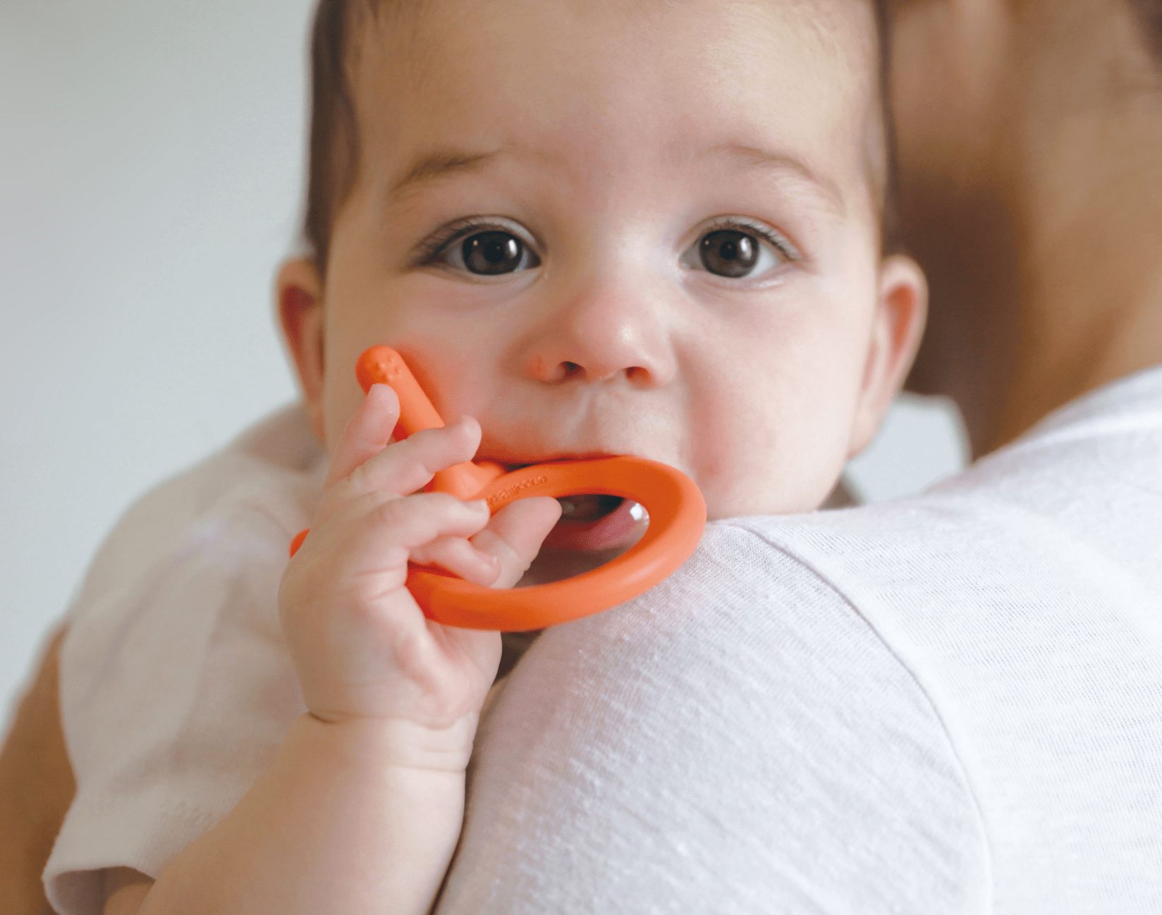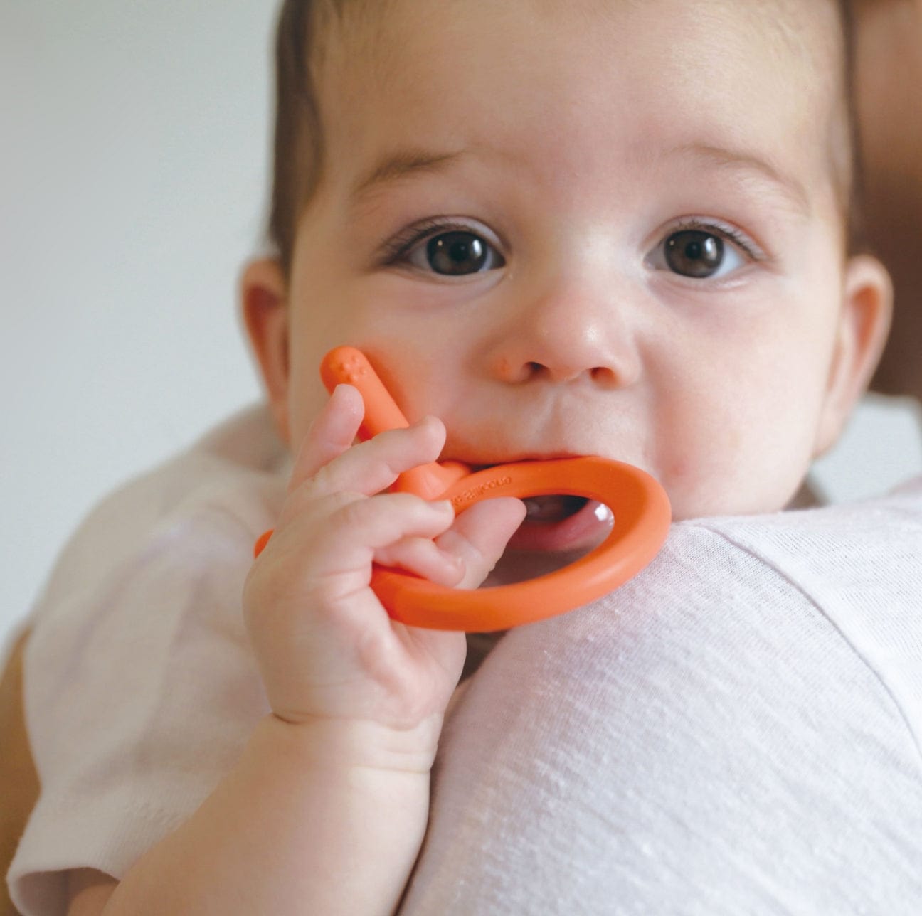 Babies love biting fingers! So we thought, why reinvent the wheel? Our teethers are designed to mimic those cute little fingers and are made with food-grade silicone that’s safe and perfectly chewy!